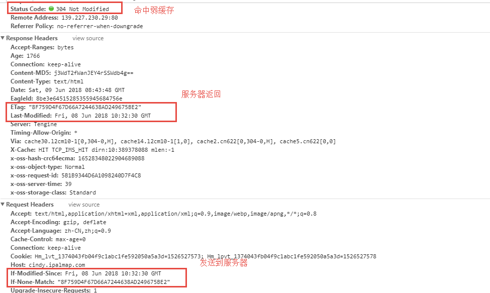 If-Modified-Since: Sat, 09 Jun 2018 08:13:56 GMT // 跟Last-Modified的值一样