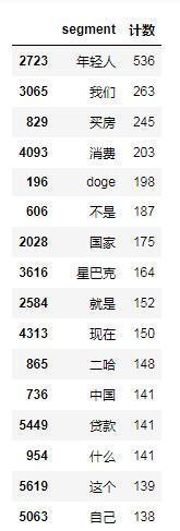 words_stat = words_df.groupby(by=['segment'])['segment'].agg({"计数": np.size})