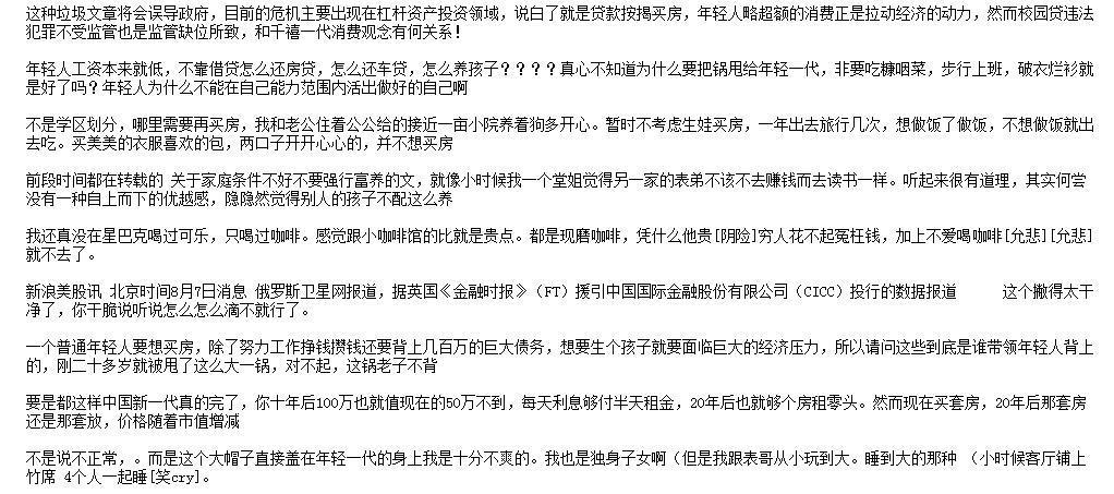 全款 意思 时候 媒体 内需 社会 俄罗斯 黑锅 一代人 东西 大锅 原文 卧槽 家庭 美国 杠杆 套房 有点 财经 租房 年轻一代 校园 新闻 逻辑 脑子 负债 花钱 砖家 消费观念 白条 地方 苹果 恶心 干嘛 人家