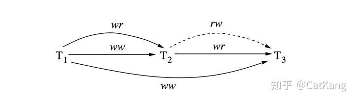 - 先写后读冲突wr(Directly Read-Depends):一个事务修改某个数据库Object后,另一个对该Object进行读操作(w1[x]…r2[x]...);
