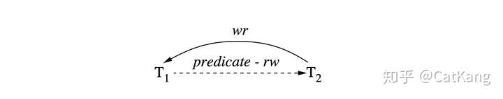 T1在谓词P上与T2 rw冲突,反过来T2又在z上与T1wr冲突,如下图所示: