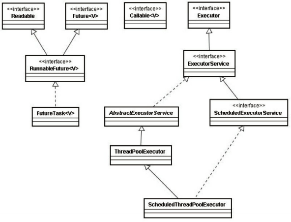 (2)任务的执行。包括任务执行机制的核心接口Executor,以及继承自Executor的 ExecutorService接口。Executor框架有两个关键类实现了ExecutorService接口(ThreadPoolExecutor和ScheduledThreadPoolExecutor)。