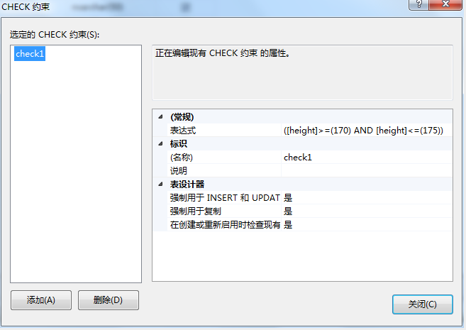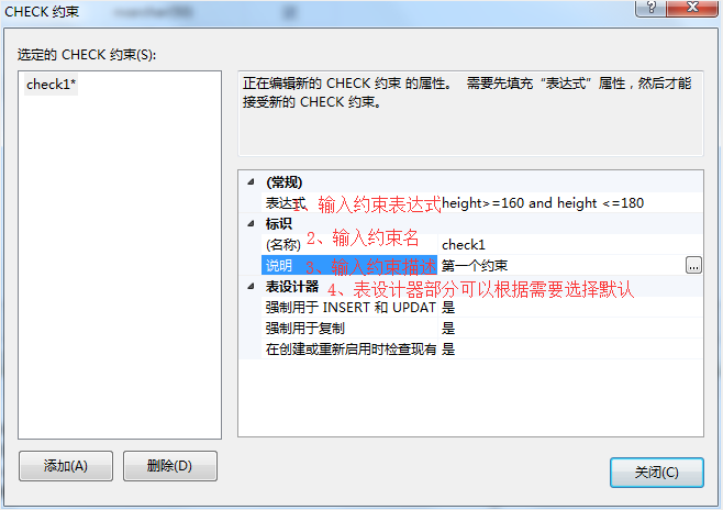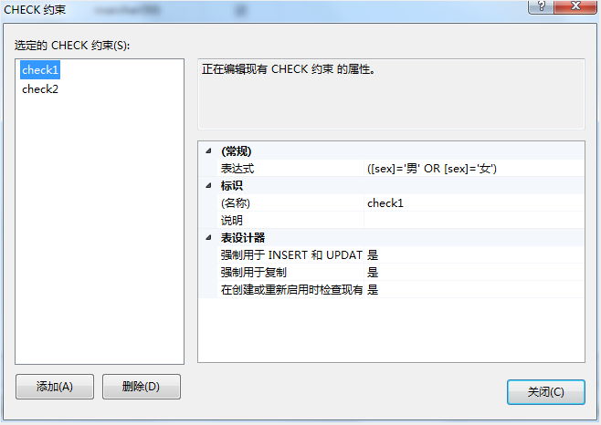 使用SSMS数据库管理工具添加CHECK约束