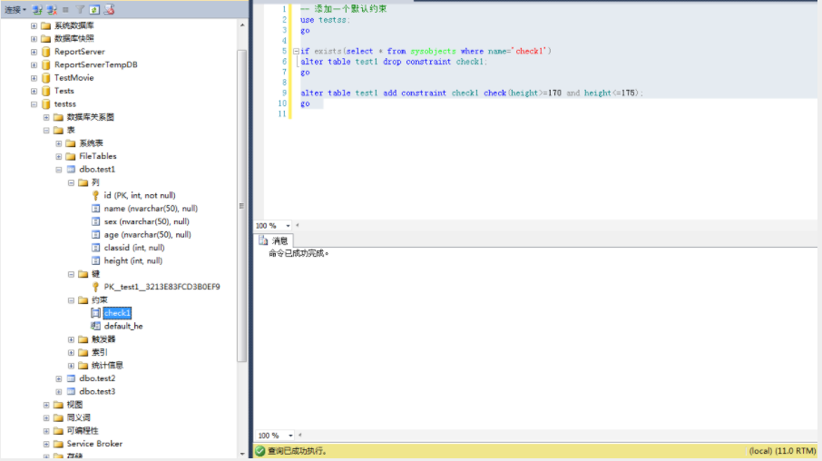 使用T-SQL脚本添加CHECK约束