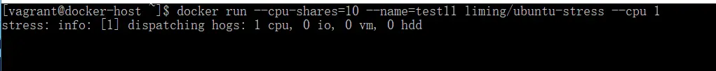 docker run --cpu-shares=10 --name=test11 liming/ubuntu-stress --cpu 1