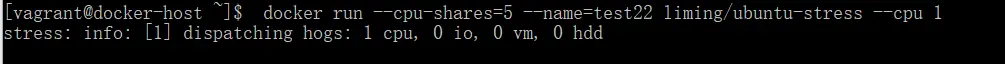 docker run --cpu-shares=5 --name=test22 liming/ubuntu-stress --cpu 1
