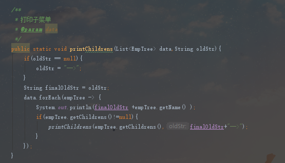 public static void printChildrens(List<EmpTree> data,String oldStr){
