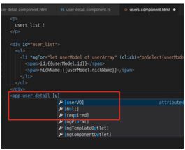 第一步,我们使用 ng generate component user-detail命令来生成一个详情模块.在vs code 中我们用Ctrl+Shift+P 打开命令窗口,选ng generate,之后选component,最后输入我们组建的名称user-detail