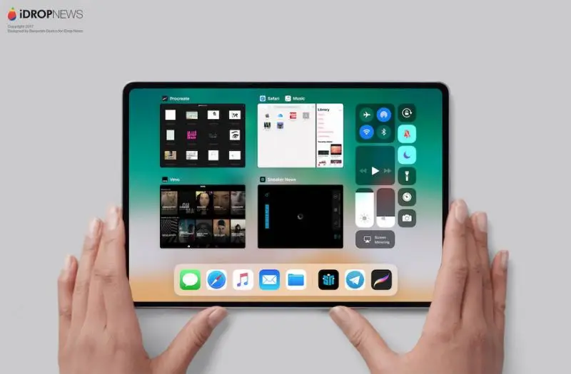 新一代ipad也将迈入全屏时代,减少或完全无边框,取消home键,启动人脸识别解锁模式。
