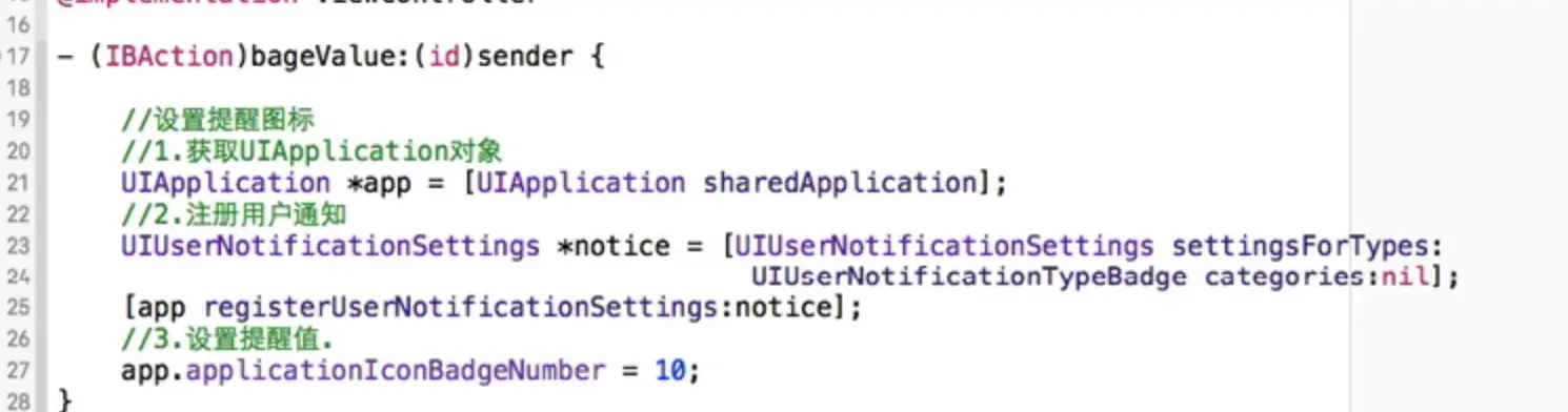 1.设置角标,首先设注册用户通知,才能设置提醒值: