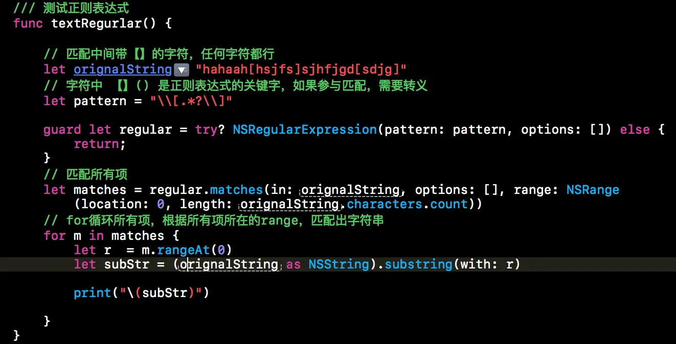 for循环所有项,根据所有项所在的range,匹配出字符串