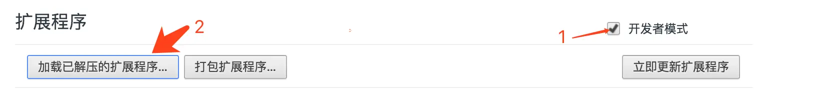 - 点击“开发者模式”->“加载已解压的扩展程序”->选择前面下载后解压的文件夹,进行安装