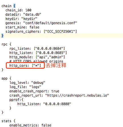 web钱包 web钱包选择本地网络时,会出现“网络错误”的提示,需要修改项目根目录下/conf/default/config.conf的内容,去掉“#”并改为:http_cors:["*"]