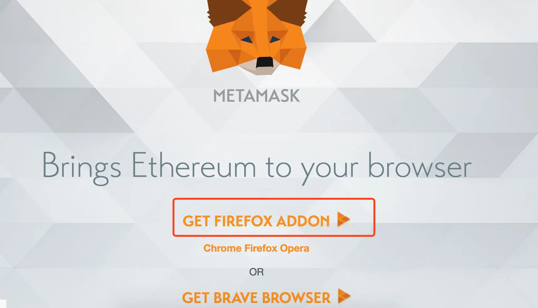 1.打开火狐浏览器,输入:metamask.io/,选择GET FIREFOX ADDON