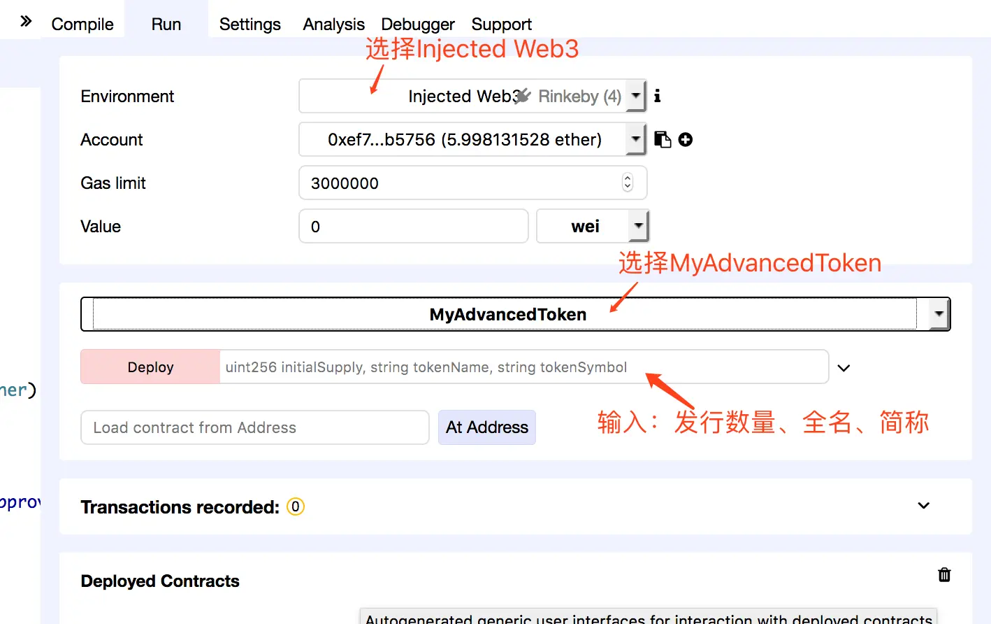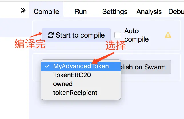 编译智能合约,发行Token