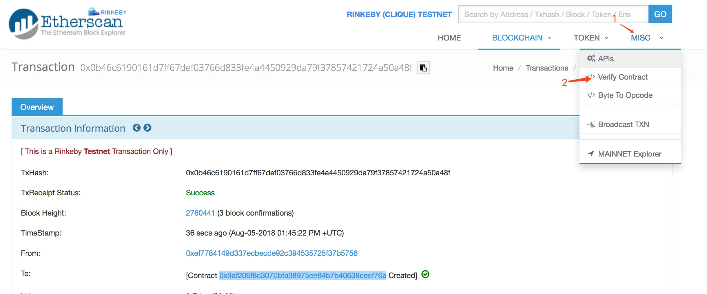 1.打开区块浏览器验证合约地址