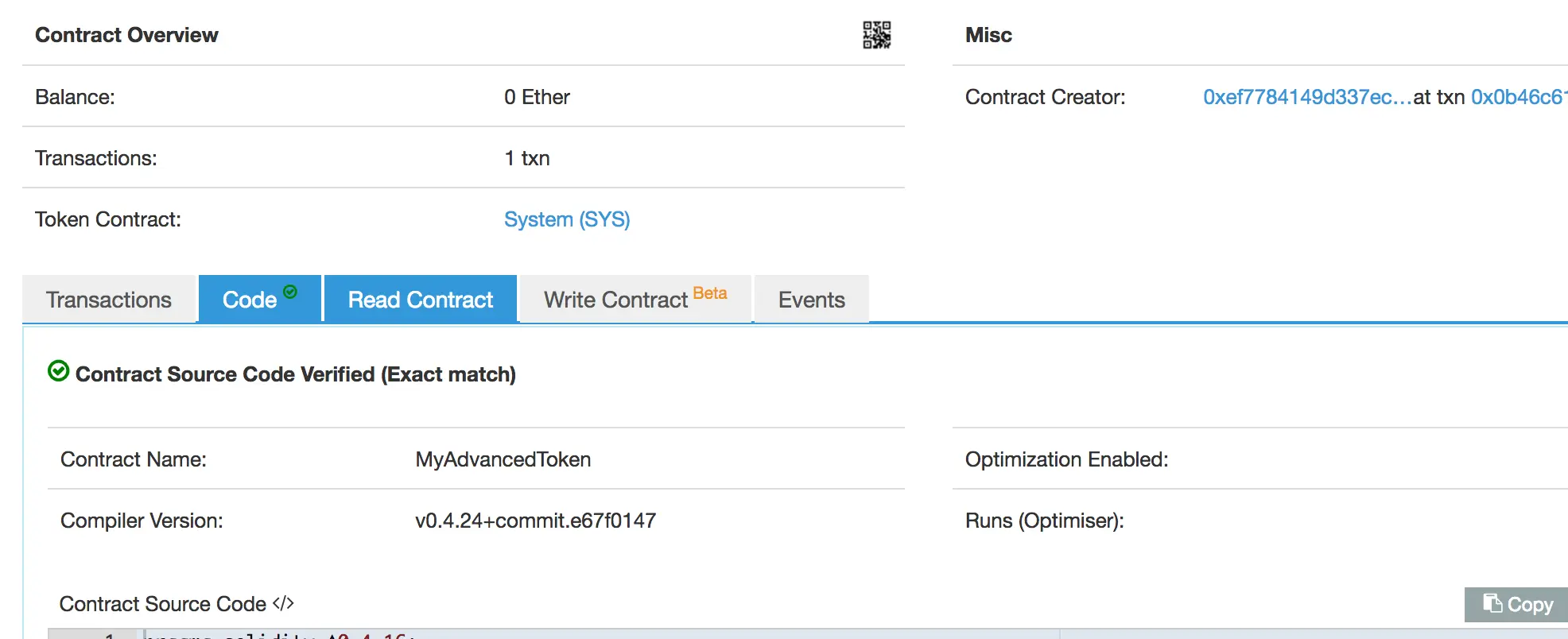 - 第三个参数:代币的简称,格式:100000000, "System", "SYS"