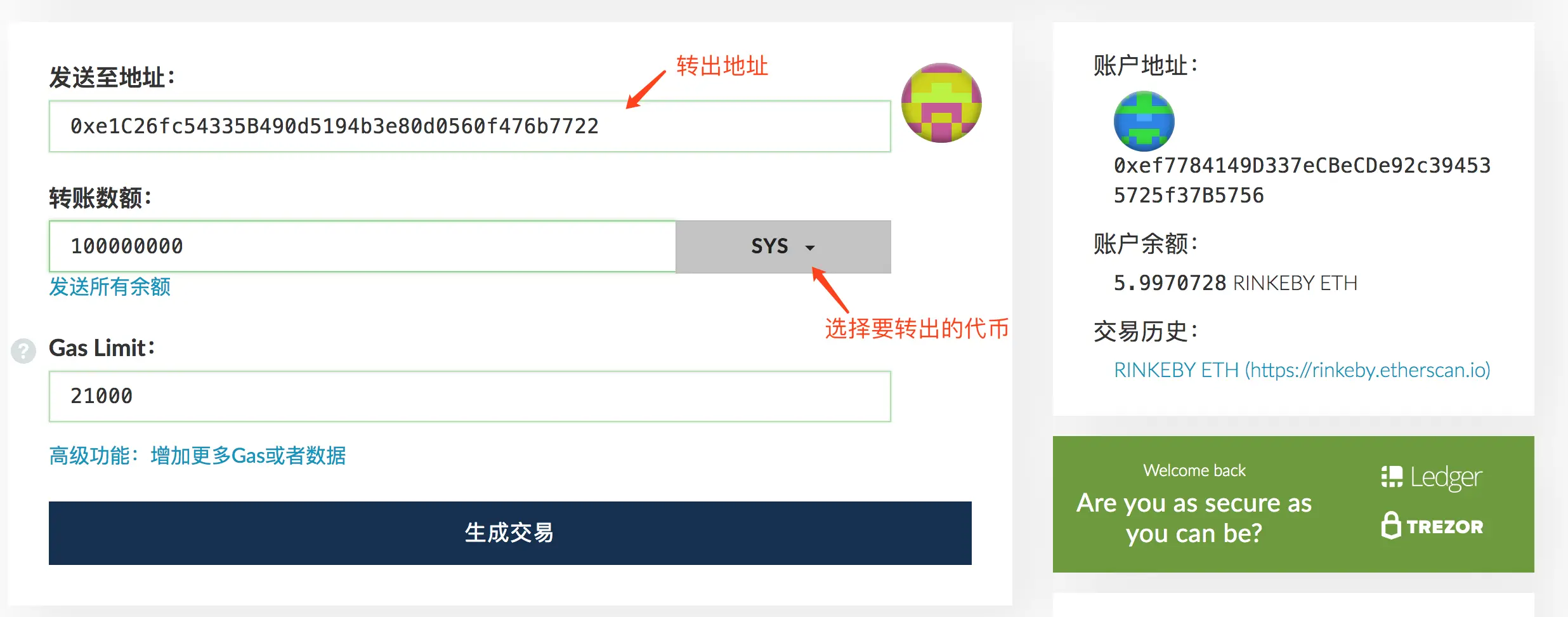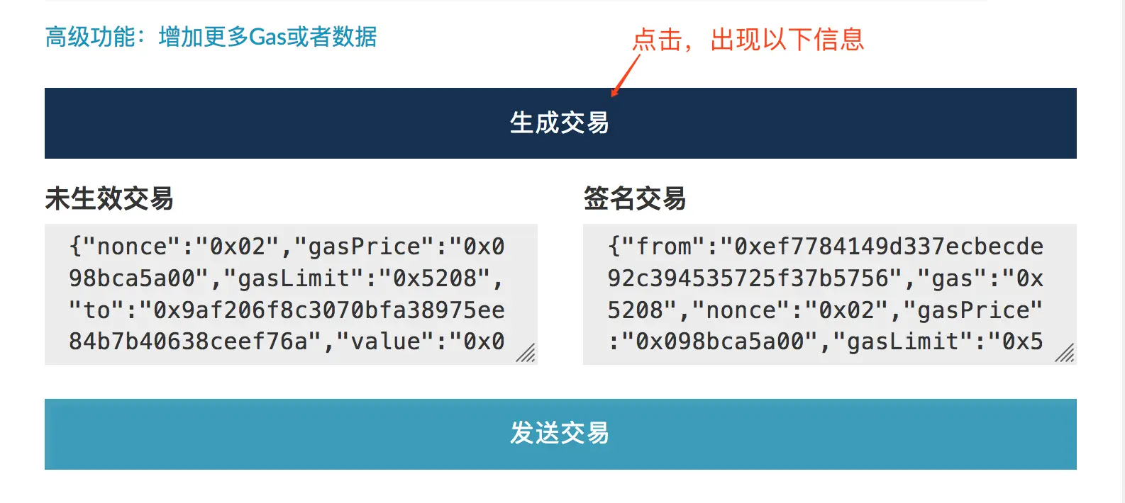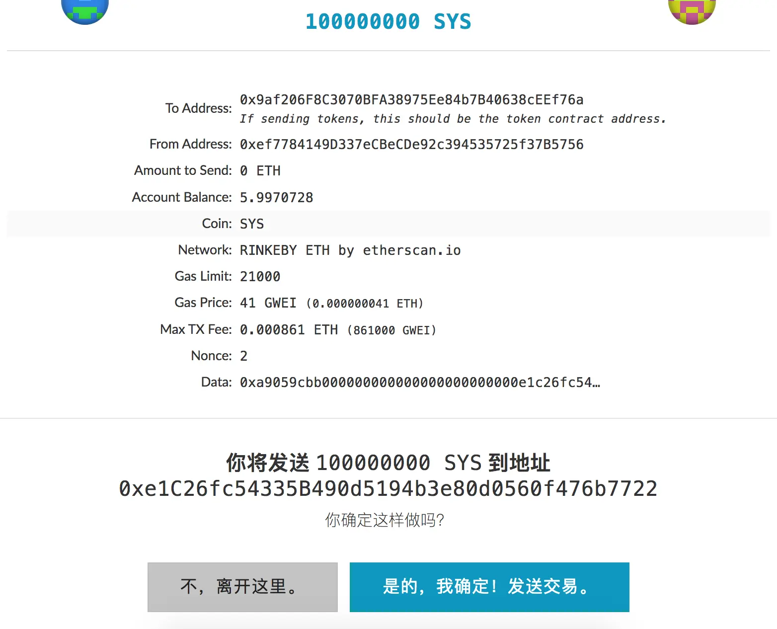 点击“发送交易”会弹出以下的内容