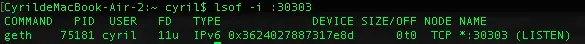lsof -i :30303