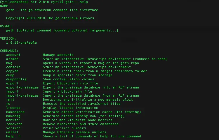 geth --help