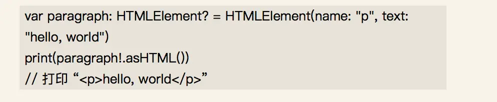 - 为了满足这种需求,通过在类型结尾处加上感叹号(City!)的方式,将Country的capitalCity属性声明为隐式解析可选类型的属性。这意味着像其他可选类型一样,capitalCity属性的默认值为nil,但是不需要展开它的值就能访问它