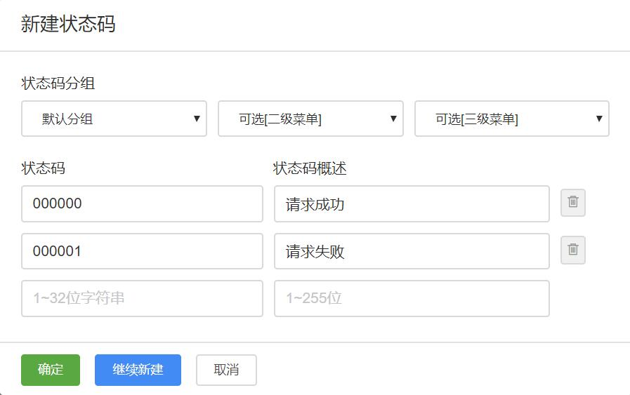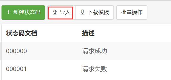 创建导入状态码,接口情况一目了然 eoLinker 2018-09-05 142 阅读1分钟 举个例子,要在“演示空间”的“示例素材项目”中添加两个状态码: 首先找到“演示空间”中的“示例素材项目”,点击进入后选择“状态码文档”。 eoLinker支持两个方式添加状态码:手动添加 点击“新建状态码”,填好上文提及的两个状态码和概述,点击“确定”即可。 也可以通过Excel批量导入状态码,“下载模板”后,输入状态码和描述,保存Excel后,再“导入”状态码文档即可。