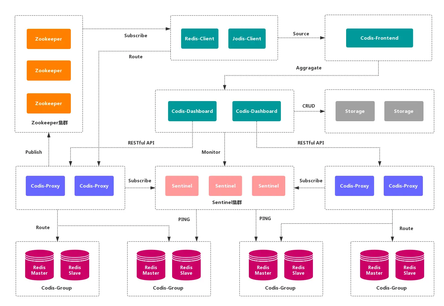 Codis 是一个 分布式 Redis 解决方案,对于上层应用来说,连接 Codis-Proxy 和直接连接 原生的 Redis-Server 没有的区别。Codis 底层会 处理请求的转发,不停机的进行 数据迁移 等工作。Codis 采用了无状态的 代理层,对于 客户端 来说,一切都是透明的。