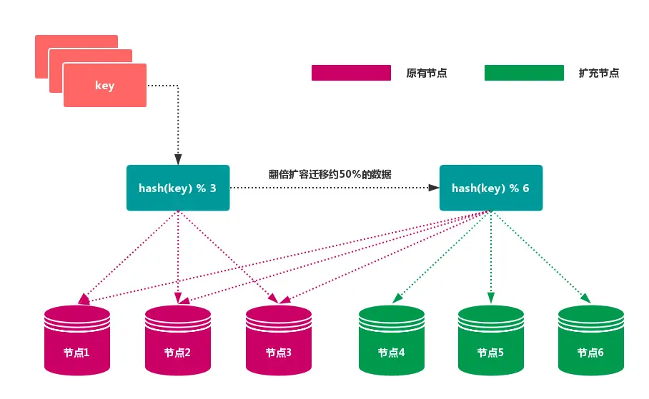 当 节点数量 变化时,如 扩容 或 收缩 节点,数据节点 映射关系 需要重新计算,会导致数据的 重新迁移。