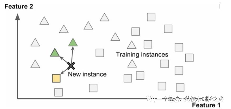这种学习算法可以说是机器学习中最简单的算法了,它实际上就是采用存储的数据集进行分类或者回归,典型的算法就是 KNN 算法,即 K 近邻算法,它就是将新的输入数据和已经保存的训练数据采用相似性度量(一般采用欧式距离)得到最近的 K 个训练样本,并采用 K 个训练样本中类别出现次数最多的类别作为预测的结果。