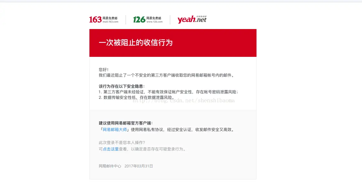 最后查出的问题,这个问题是网易邮箱所特有的,原因在于,网易为了推广自身产品-网易邮箱大师,所以拦截了其他第三方请求。