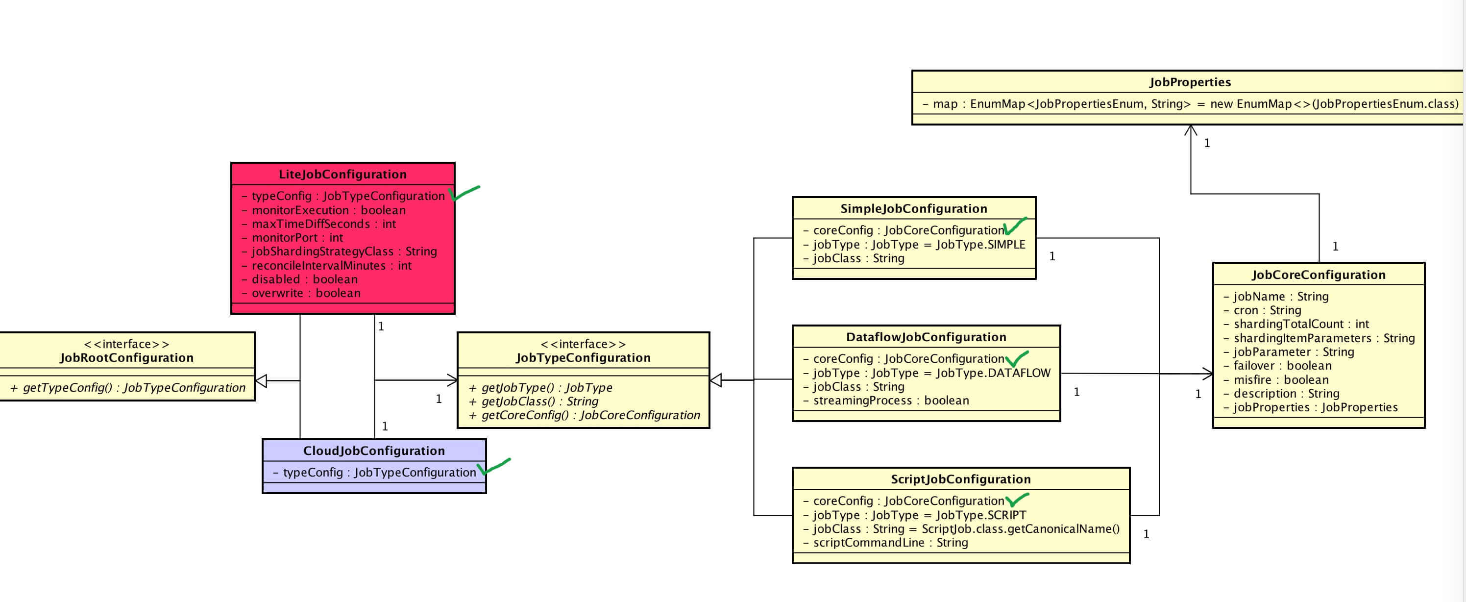 作业核心配置( JobCoreConfiguration ),我们可以看到在每种作业类型配置都有该属性( coreConfig )。