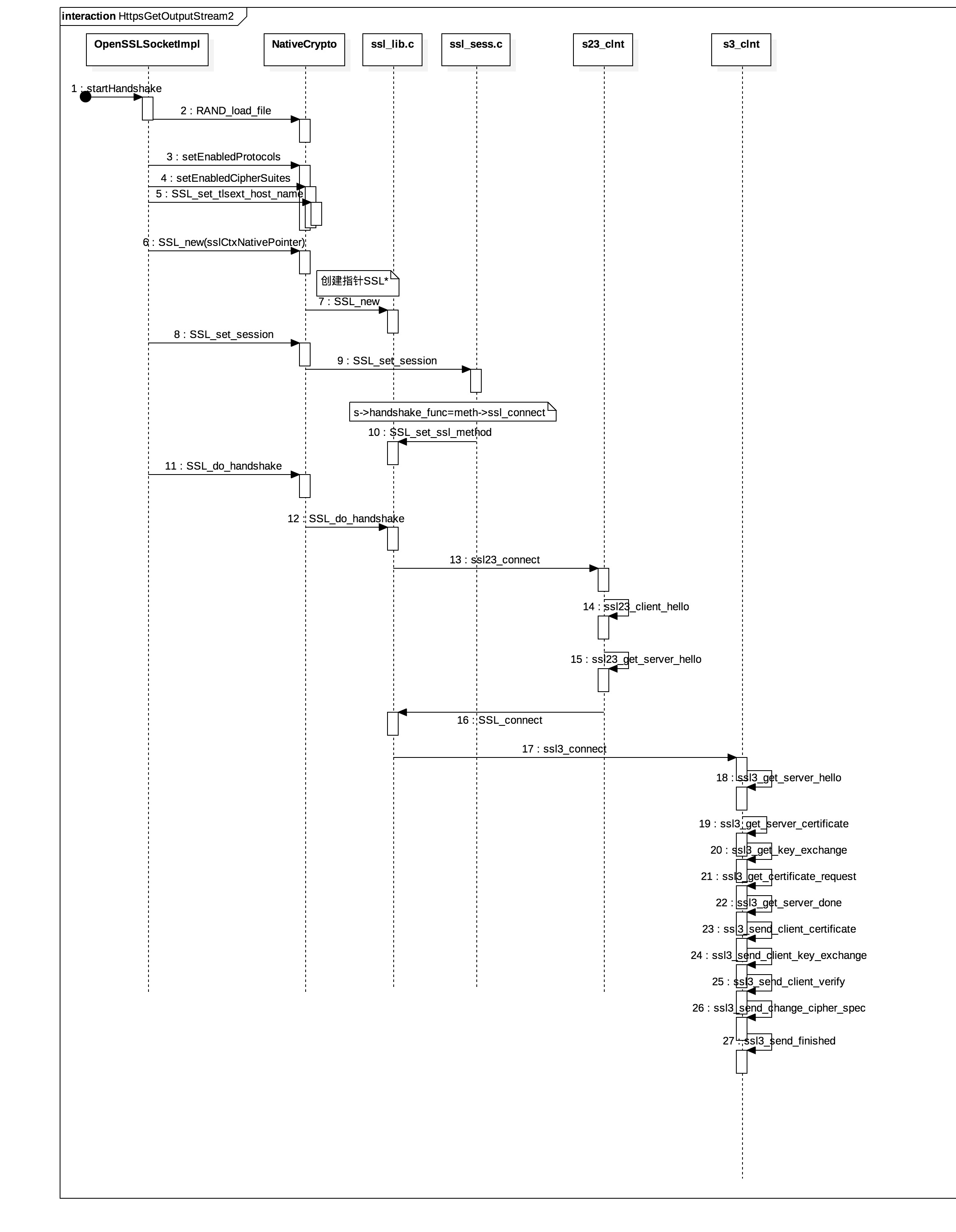 相较于HTTP的getOutputStream(),这一部分多了个TLS/SSL的握手部分,然后再加上这里涉及到了另外三方开源库OpenSSL的实现,这里至少需要分成三部分来讲解。为了讲解不过于复杂,先来看前两部分: