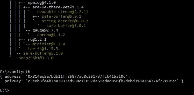 在Windows上安装vanity-eth后: