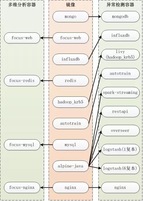 异常检测模块(简称Anomaly)使用6个镜像及15个容器。