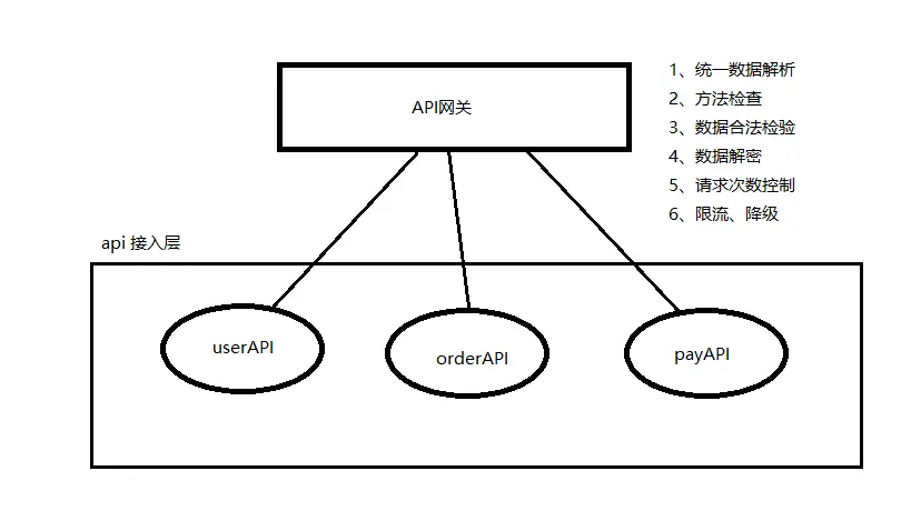 1、api网关主要工作: 统一解析参数 、检验数据、