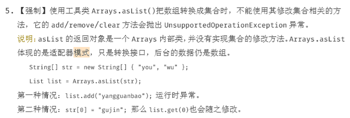 参考Arrays.asList() - 采用适配器模式。 内部类ArrayList继承了AbstractList,但是没有实现修改集合的方法,只是做了转换Array -> List.