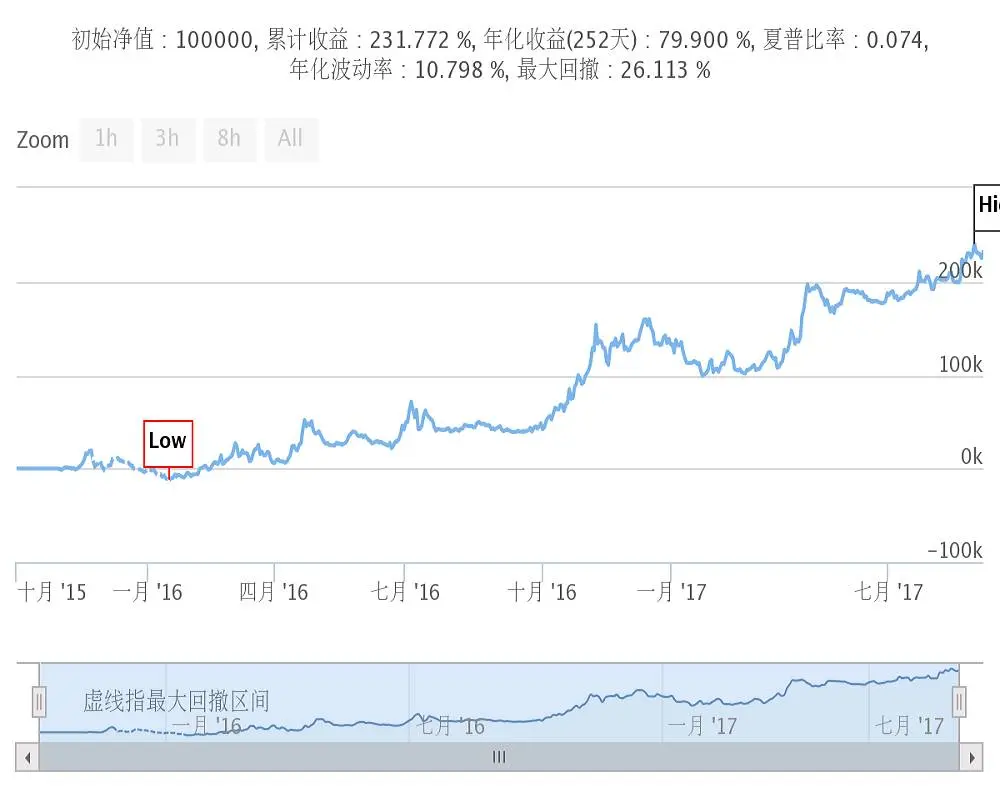 2、回撤和风险成正比,回撤越大,风险越大,回撤越小,风险越小。