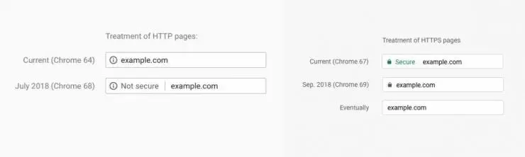 而今天,Chrome 69的发布,宣布移除“Secure”标识,不会再特地将HTTPS网站标记为“安全”,而是改在采用HTTP标准协议的网站旁标注“不安全”。这么做的目的是让用户了解不安全的网站,从而进一步推进全网加密。