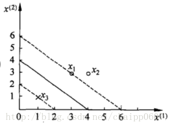 显然,由于b的公式由支持向量与决策平面的距离推导得到,所以x2的计算结果是错误的。 于是得到最后的决策边界为: 0.5x1+0.5x2+2=0