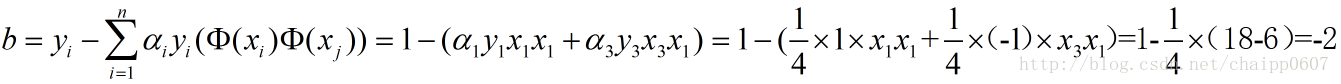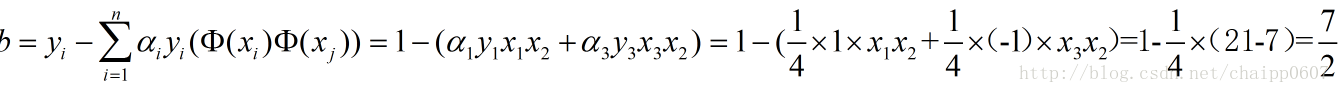 注意:在上面b的公式中,i=1,2,…,n。但是j却没有给值,这是因为j是任意一个支持向量都可以。