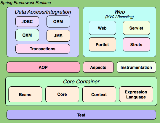 为什么可以这样配置?接下来我们以spring 3.2.17.RELEASE版本为例,介绍spring框架结构,spring 4稍有不同,将在最后介绍,spring官网给出了一张spring3的结构图: