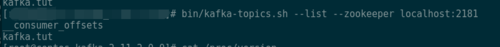 在服务器执行bin/kafka-topics.sh --list --zookeeper localhost:2181可以看到topic