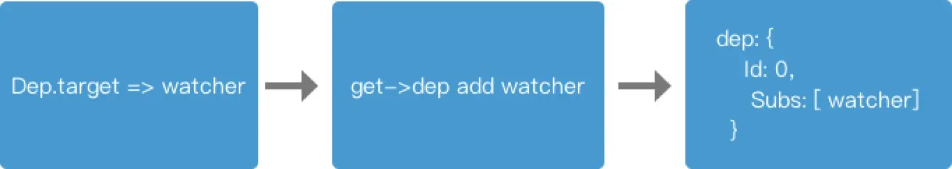 可以看出, 在get的时候收集依赖,而Dep.target 其实就是watcher, 等下讲到watcher的时候再回过来, 这里要关注dep 其实dep在这里是一个闭包环境,在执行get 或者set的时候 还可以访问到创建的dep. 比如 this.name当在获取this.name的值的时候 会创建一个Dep的实例, 把watcher 添加到这个dep中。