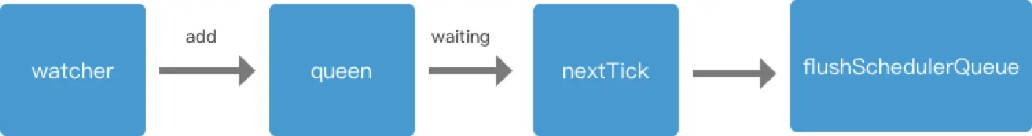 update方法并没有直接render vNode。而是把watcher推到一个队列中,事实上vue是的更新dom是异步的,为什么要异步更新队列,这边摘抄了一下官网的描述:Vue 异步执行 DOM 更新。只要观察到数据变化,Vue 将开启一个队列,并缓冲在同一事件循环中发生的所有数据改变。如果同一个 watcher 被多次触发,只会被推入到队列中一次。这种在缓冲时去除重复数据对于避免不必要的计算和 DOM 操作上非常重要。然后,在下一个的事件循环“tick”中,Vue 刷新队列并执行实际 (已去重的) 工作。Vue 在内部尝试对异步队列使用原生的 Promise.then 和 MessageChannel,如果执行环境不支持,会采用 setTimeout(fn, 0) 代替。其实这是一种非常好的性能优化方案,我们设想一下如果在mounted中循环赋值,如果不采用异步更新策略,每一个赋值都更新,完全是一种浪费。