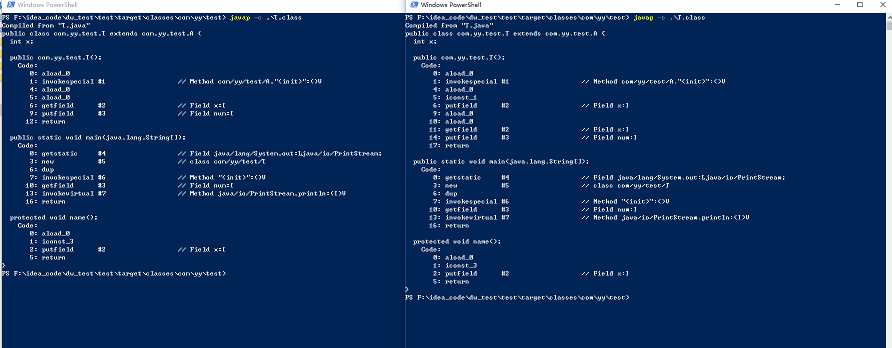 分别将两段代码进行javap -c 反编译之后,发现两种情况下的差异在于执行构造函数时,多了一次赋值操作。