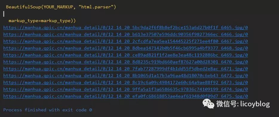到这一步,我们就拿到了动漫章节包含真实的图片URL的完整HTML代码,接下来就可以为所欲为了,这里我使用了BeautifulSoup来进行获取属性值,所以最终的代码脚本为: