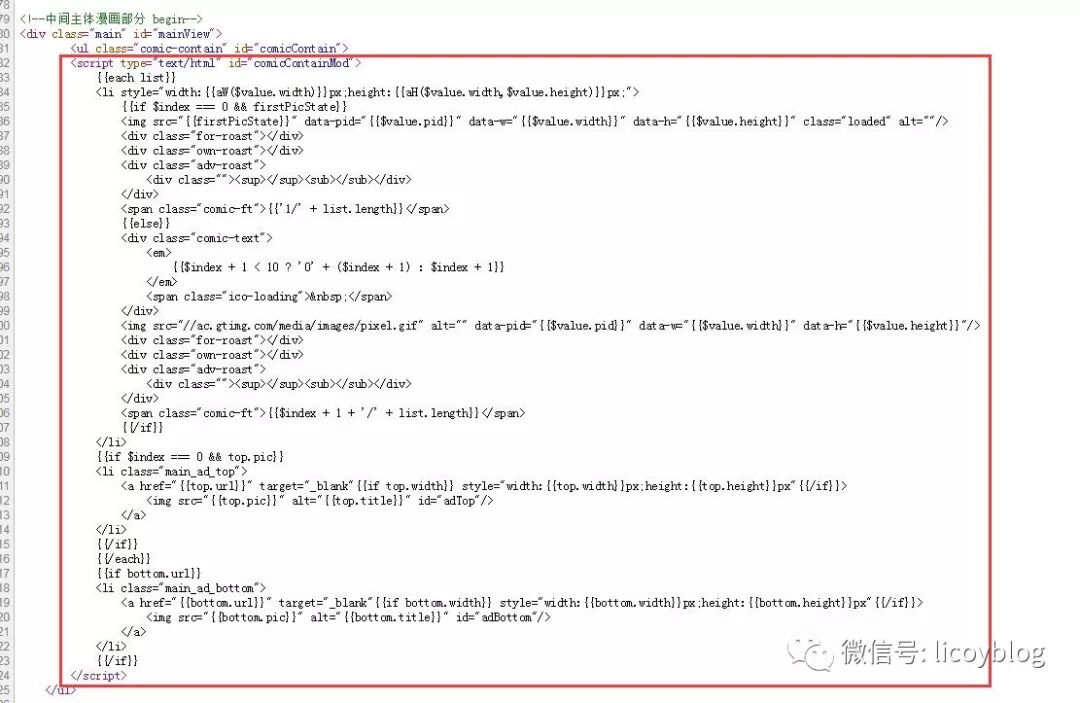 由上图可以看出,漫画的主题部分均是使用JS模板来进行渲染的,所以我们需要等页面加载完成之后,在获取他的HTML元素: