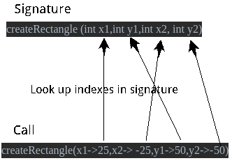 实现命名参数的思路是把命名参数的调用转换成未命名参数的调用,参数索引位置通过方法签名去获得:
