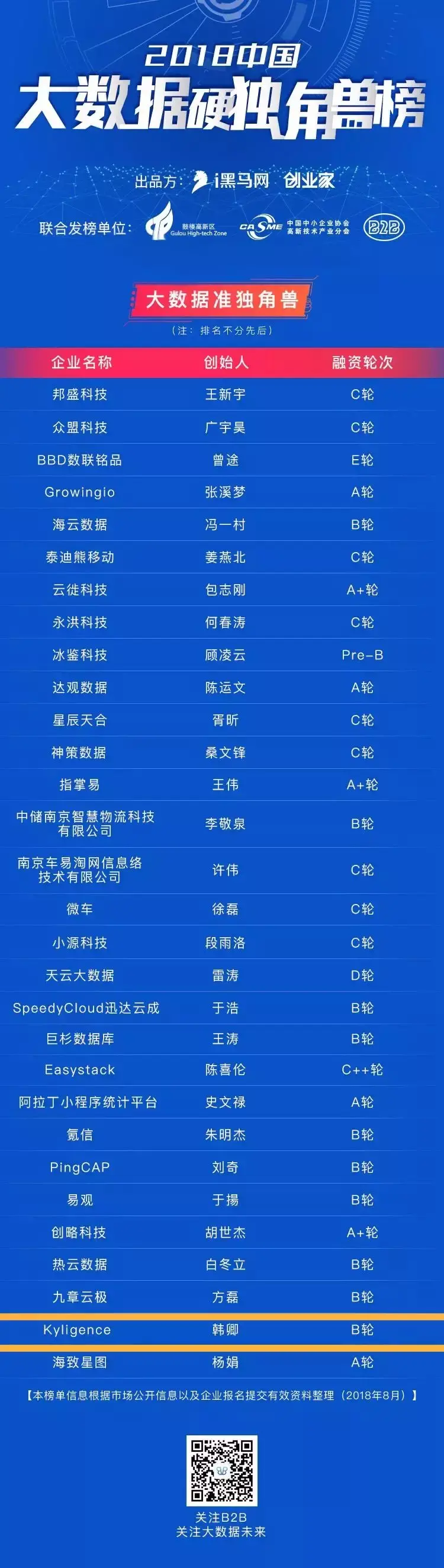 日前,由i黑马旗下的企业服务垂直媒体 B2B 圈与中国中小企业协会高新技术产业分会等联合发起的“2018中国大数据硬(准)独角兽榜”正式公布,Kyligence 凭借领先的大数据分析技术及解决方案,成功上榜“2018中国大数据准独角兽”TOP30。