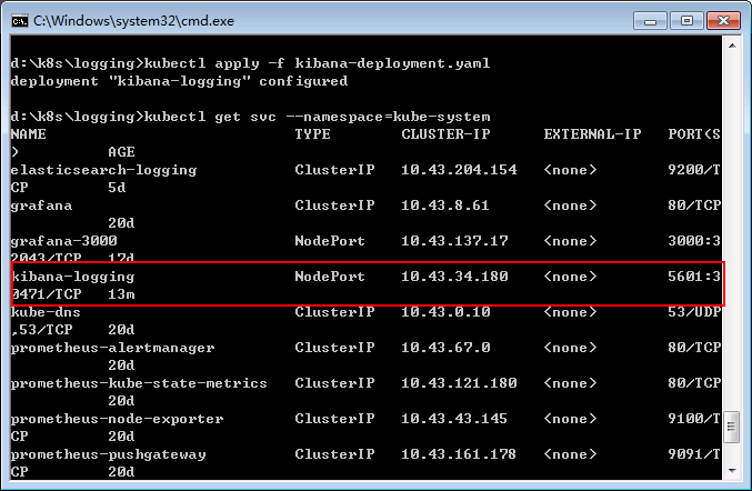 $ kubectl create -f {path}/kibana-deployment.yaml